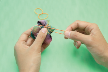 Yang kedua ikatkan beberapa helai kain dan batu mengikut kreativiti. (Bebas untuk ikat)