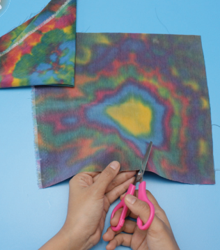 Gunting hasil ikatan dan celupan yang telah dibuat dalam langkah awal tadi.