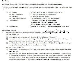 Tawaran Perlantikan Tetap Pegawai Perkhidmatan Pendidikan Gred DG41