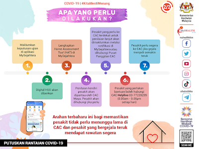 - Diberi surat kuarantin sekiranya kuarantin di rumah. (Surat ini sangat penting khususnya bagi orang yang bekerja, sebagai bukti)