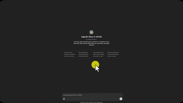 Sebagai guru major Sejarah di sekolah rendah, saya turut membangunkan CUSTOM GPT menggunakan teknologi ChatGPT.