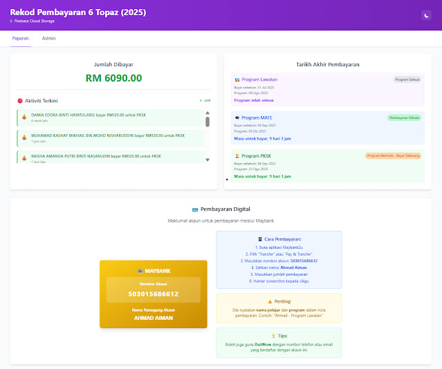 Jika mahu pengesahan, tambah toggle “Diterima / Ditolak” (manual oleh guru)
